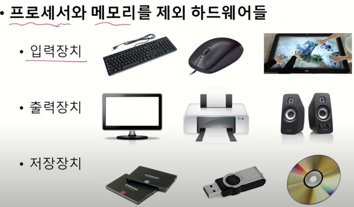 - 주변장치 - 키보드/마우스, 모니터, 프린터, 네트워크 모뎀 등