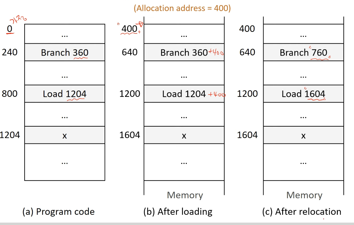 - 프로세스가 수행 도중 다른 메모리 위치로 이동할 수 있음