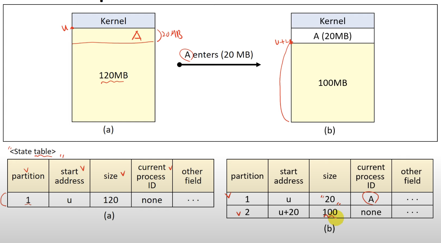 - 각 프로세스는 하나의 partition(분할)에 적재
