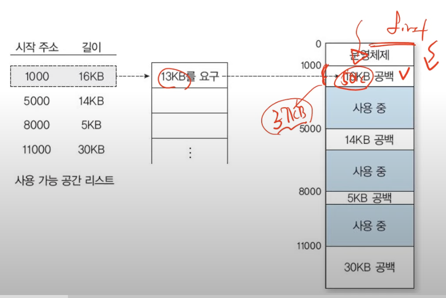 - 충분한 크기를 가진 첫 번째 partition을 선택