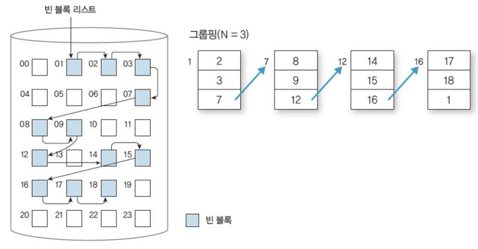 - n개의 빈 block을 그룹으로 묶고, 그룹 단위로 linked list로 연결