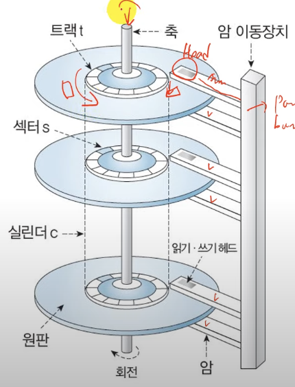 - Disk pack에 데이터를 기록하거나 판독할 수 있도록 구성된 장치