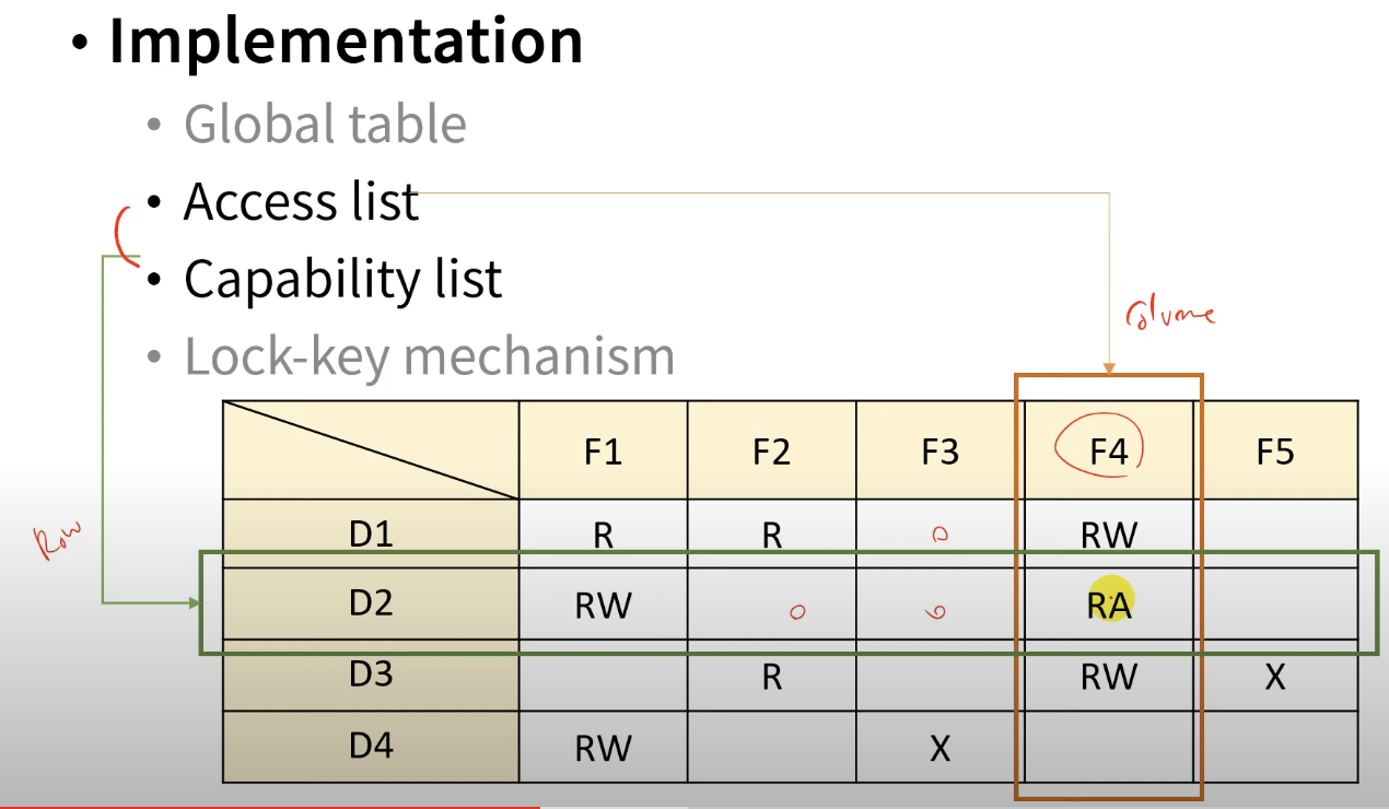 - 많은 OS가 Access list와 Capability list 개념을 함께 사용
